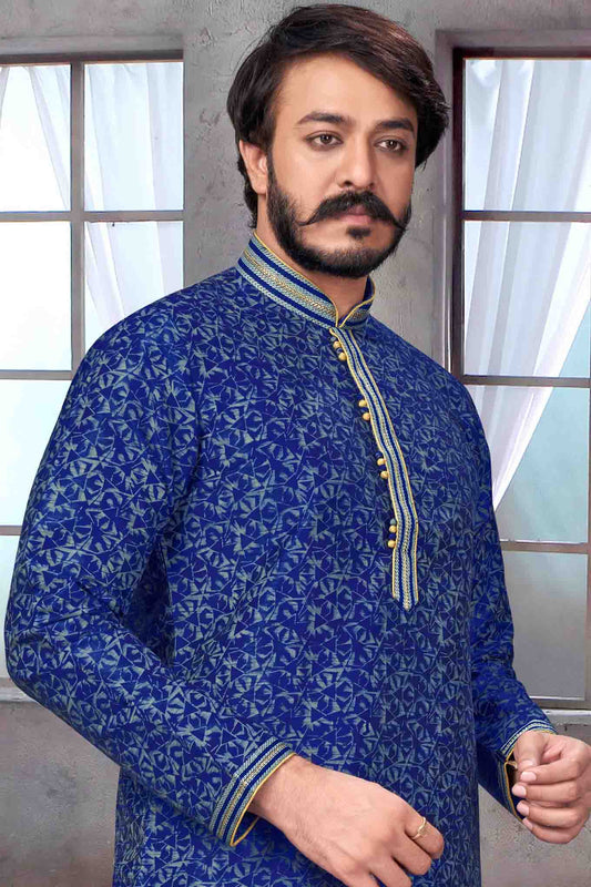 Blue Colour Kurta Pajama In Jacquard Silk VSKP1210071