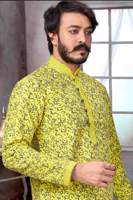 Yellow Colour Kurta Pajama In Jacquard Silk VSKP1210073