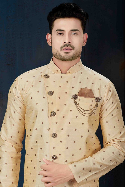 Beige Colour Jacquard Party Wear Dhoti Sherwani VSSH1040208
