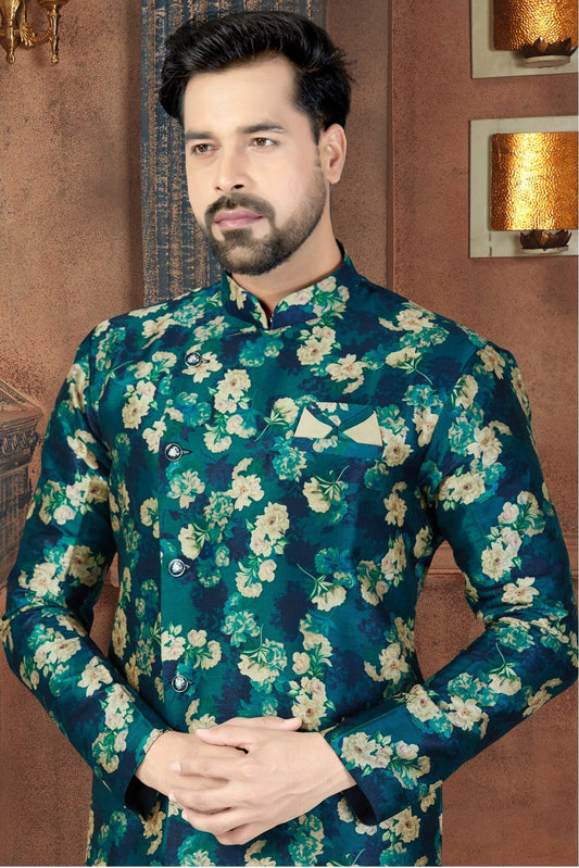 Green Colour Silk Party Wear Indo Western Sherwani VSSH1040214