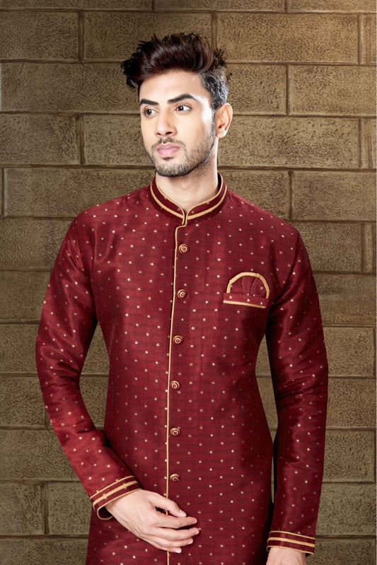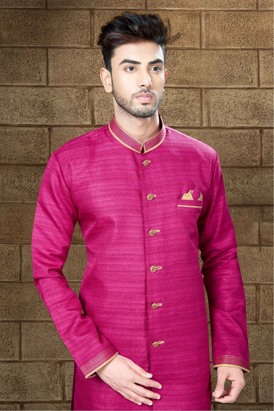 Pink and Red Colour Jacquard Slub Party Wear Dhoti Sherwani VSSH1040227