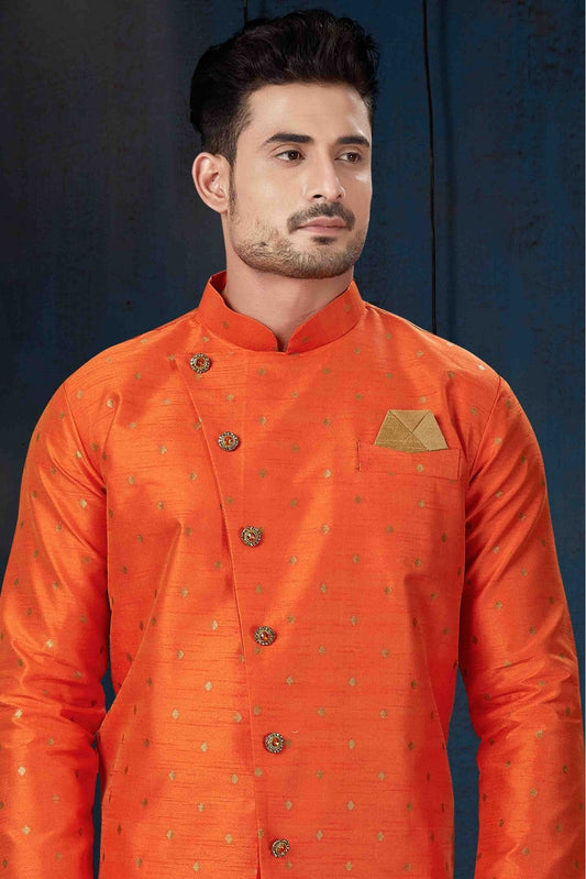 Orange Colour Silk Party Wear Indo Western Sherwani VSSH1040228