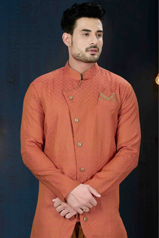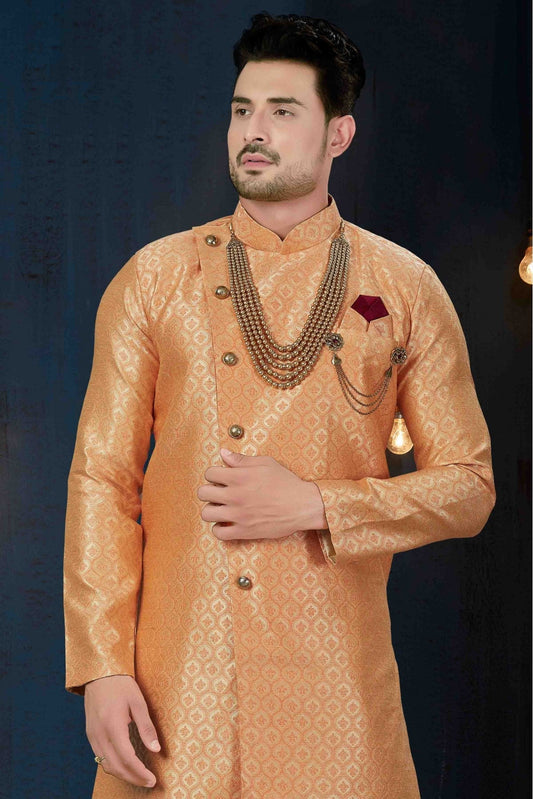 Peach Colour Jacquard Party Wear Dhoti Sherwani VSSH1040213