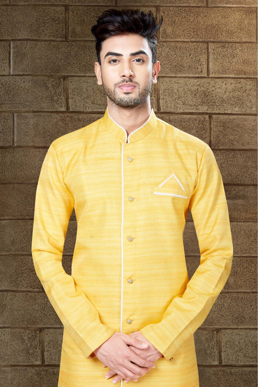 Yellow Colour Silk Party Wear Indo Western Sherwani VSSH1040229