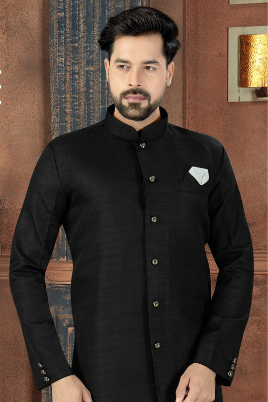 Black Colour Silk Party Wear Sherwani VSSH1040238
