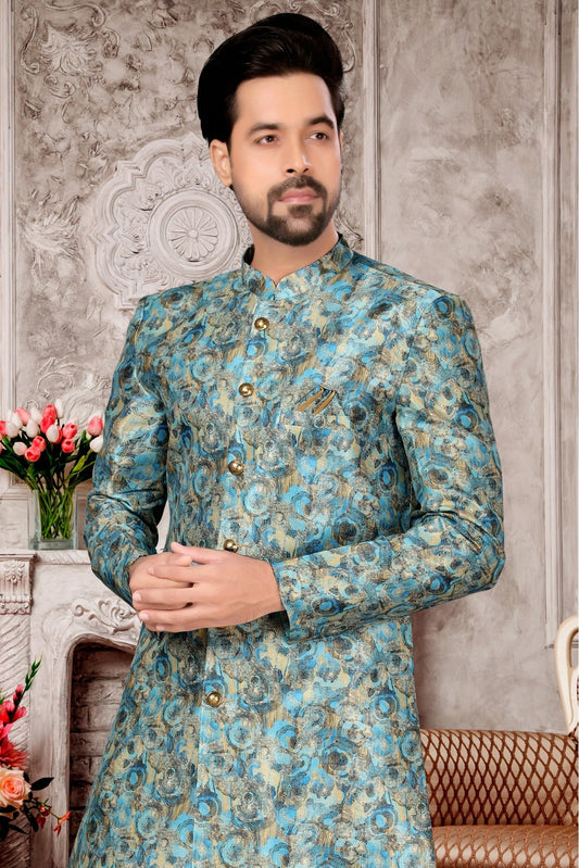 Sky Blue Colour Jacquard Woven Sherwani VSSH1040314