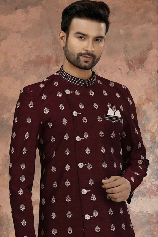 Maroon Colour Art Silk Thread Work Sherwani VSSH1040347