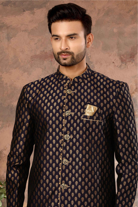 Black Colour Jacquard Woven Sherwani VSSH1040341