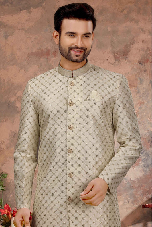 Cream Colour Art Silk Thread Work Sherwani VSSH1040345