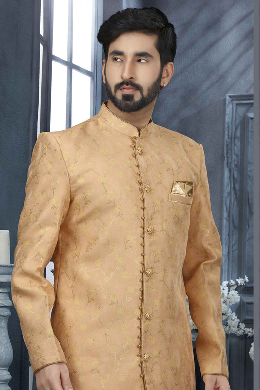 Peach Colour Jacquard Zari Work Sherwani VSSH1040325