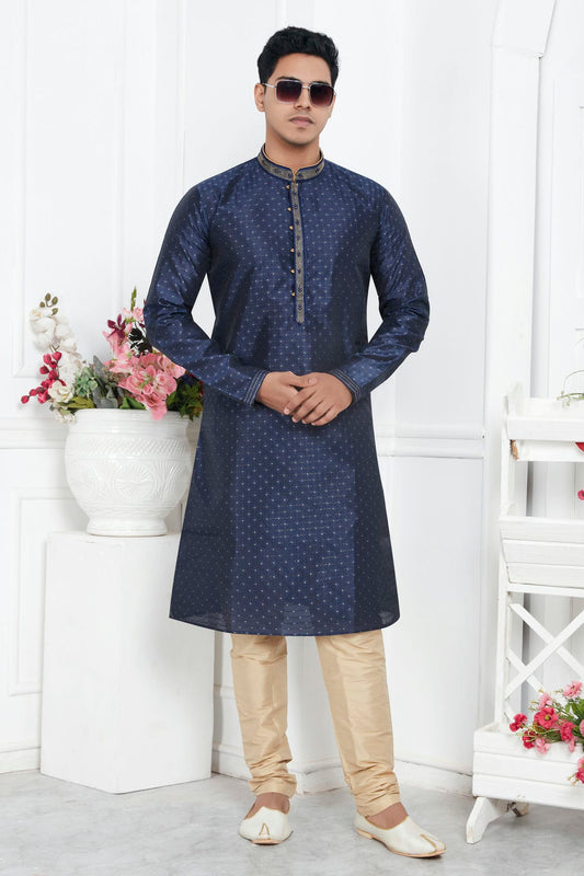Blue Colour Jacquard Silk Brocade Kurta Pajama VSKP1230219