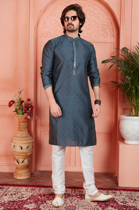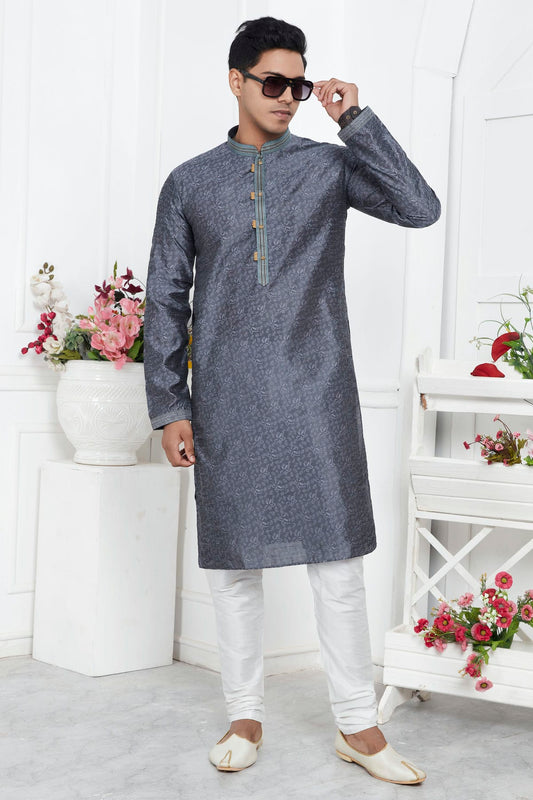 Grey Colour Jacquard Silk Brocade Kurta Pajama VSKP1230215