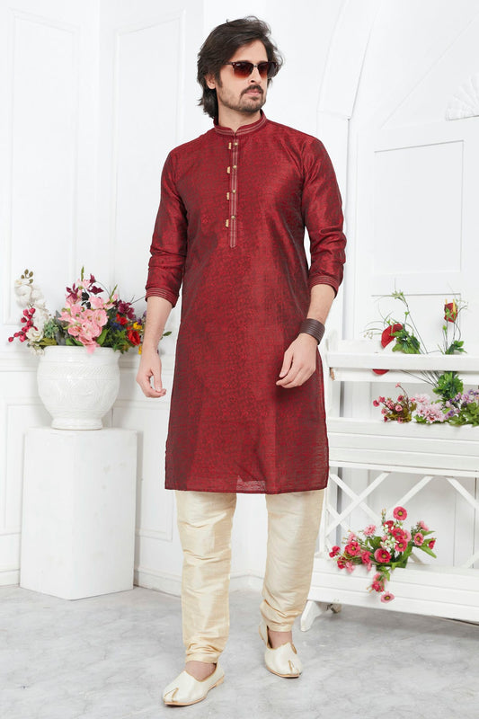 Maroon Colour Jacquard Silk Brocade Kurta Pajama VSKP1230213
