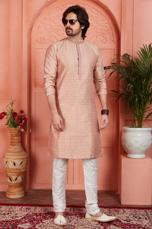 Peach Colour Jacquard Silk Brocade Kurta Pajama VSKP1230228
