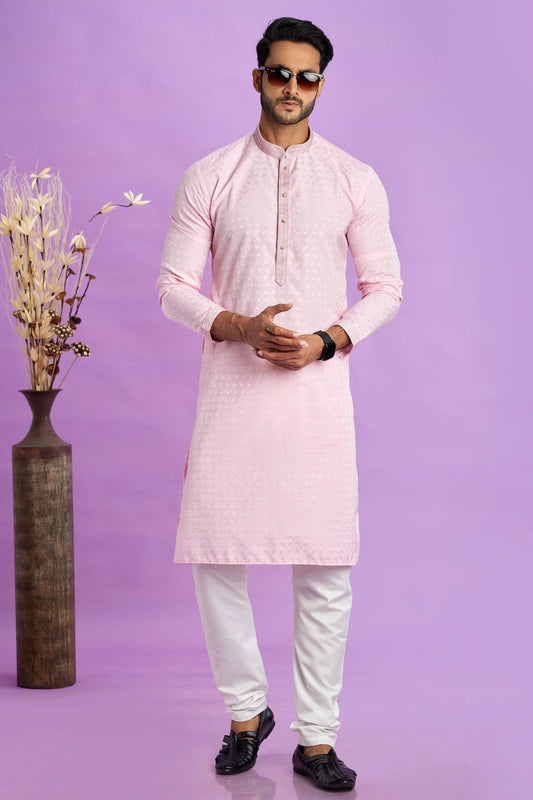 Pink Colour Jacquard Art Silk Pintex Work Kurta Pajama VSKP1230198