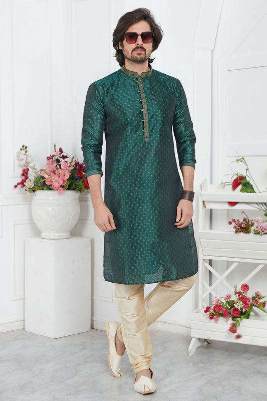 Rama Green Colour Jacquard Silk Brocade Kurta Pajama VSKP1230218