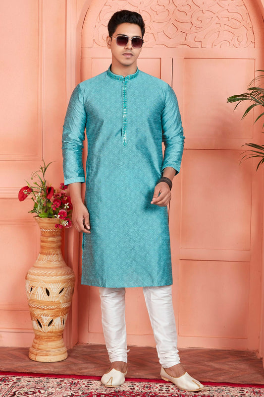 Teal Colour Jacquard Silk Brocade Kurta Pajama VSKP1230214
