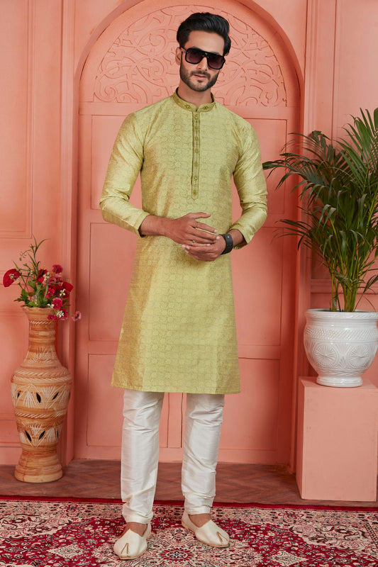 Pista Green Colour Jacquard Silk Brocade Kurta Pajama VSKP1230211