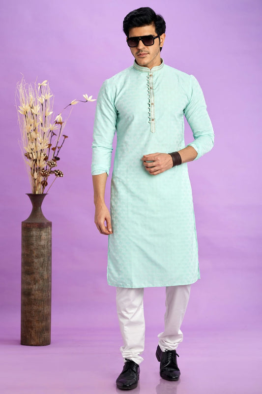 Light Blue Colour Jacquard Silk Brocade Kurta Pajama VSKP1230220