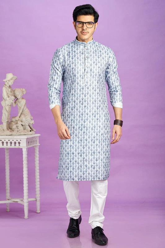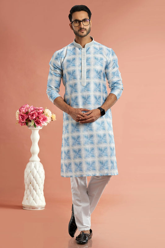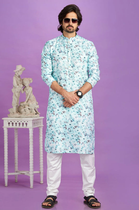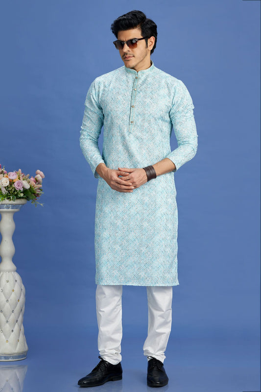 Sky Blue Colour Cotton Thread Work Kurta Pajama VSKP1230168