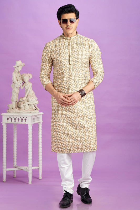 Beige Colour Cotton Pintex Work Kurta Pajama VSKP1230160