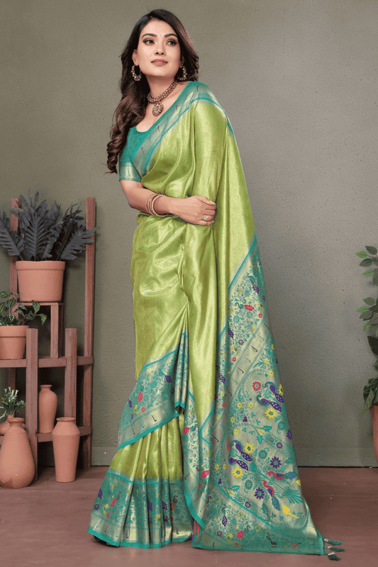 Pista Green Colour Woven Work Pure Banarasi Tissue Silk Traditional Saree VSSD1250271