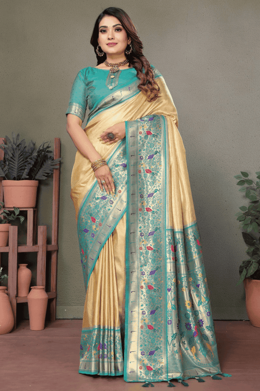 Cream Colour Woven Work Pure Banarasi Tissue Silk Traditional Saree VSSD1250266