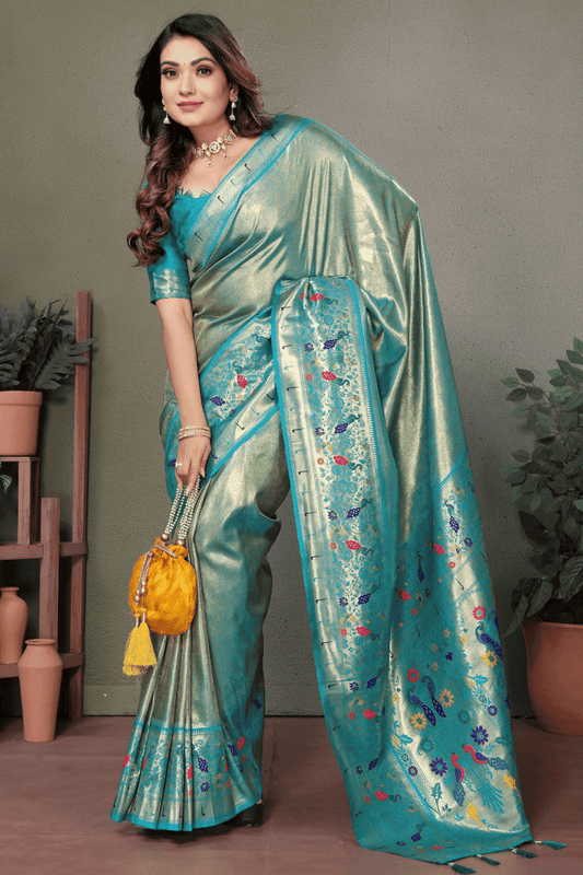 Blue Colour Paithani Silk Paithani Saree VSSD1110954