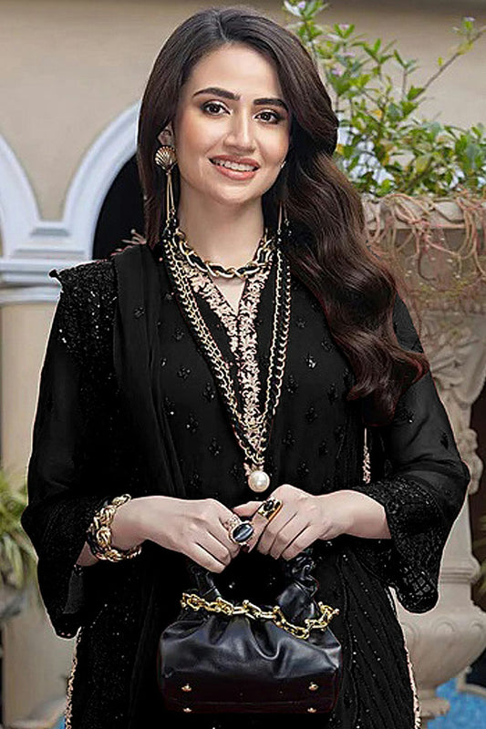 Black Colour Semi Stitched Faux Georgette Pakistani Suit VSSM1140317