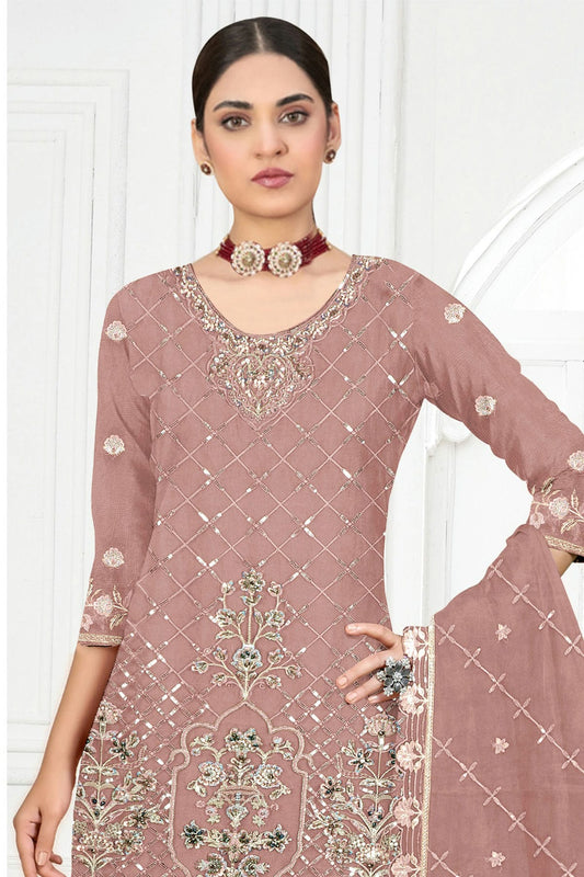 Pink Colour Semi Stitched Chinon Silk Pakistani Suit VSSM1140283