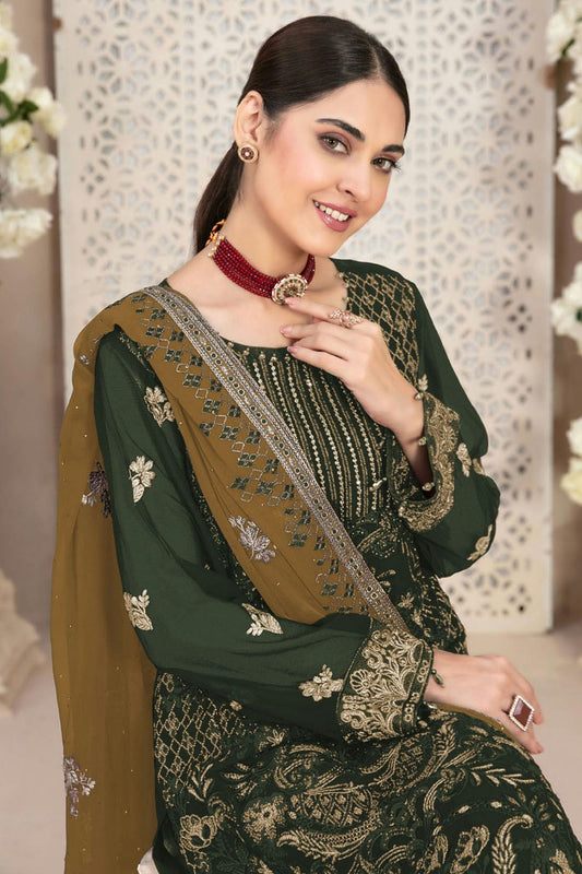 Mehendi Green Colour Faux Georgette Pakistani Suit VSSM1140054