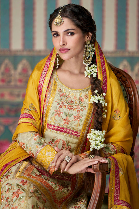 Cream Colour Simar Silk Palazzo Pant Suit VSSM1140532