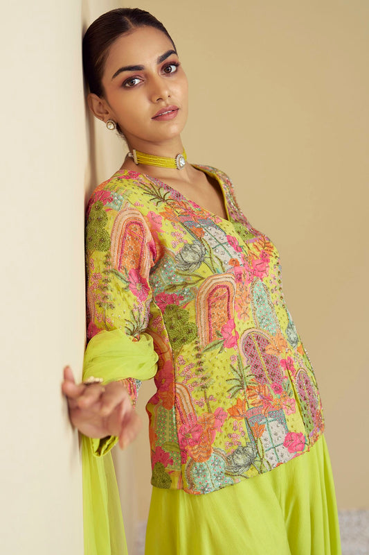 Green Colour Faux Georgette Palazzo Pant Suit VSSM1050677