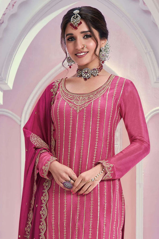 Pink Colour Chinon Palazzo Pant Suit VSSM1140612