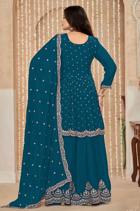 Teal Colour Chinon Palazzo Pant Suit VSSM1050586