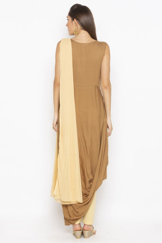 Beige Colour Plus Size Cotton Embroidery Pant Style Suit VSSS1070318