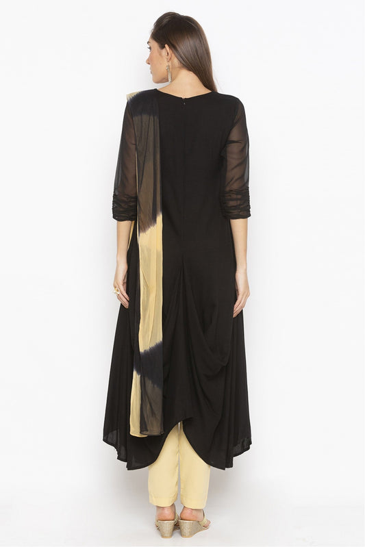Black Colour Plus Size Cotton Embroidery Pant Style Suit VSSS1070313