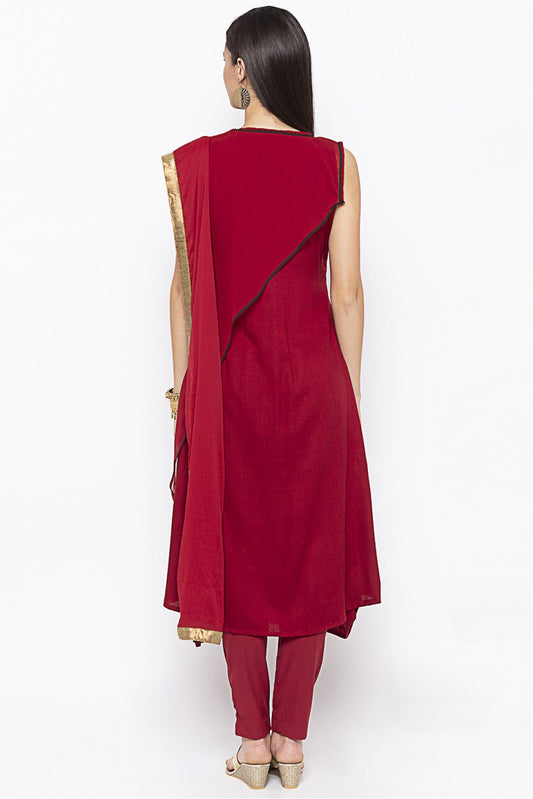 Maroon Colour Plus Size Cotton Embroidery Pant Style Suit VSSS1070320