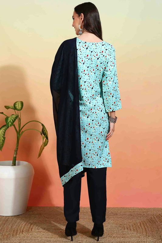 Sky Blue Colour Crepe Printed Pant Style Suit VSSS1113634