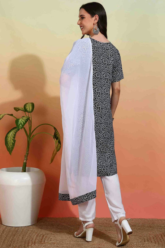 Black Colour Crepe Printed Pant Style Suit VSSS1113633