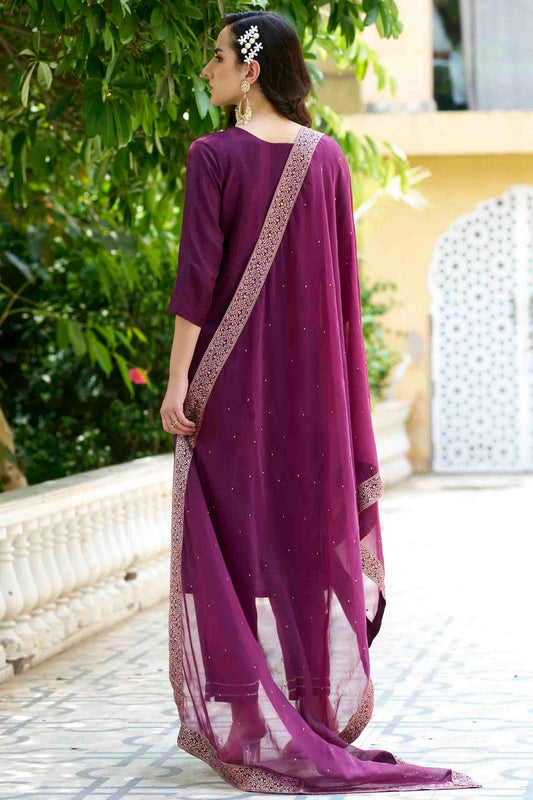 Voilet Colour Silk Embroidery Pant Style Suit VSSS1113645