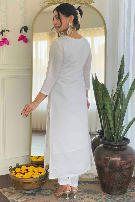 White Colour Chanderi Embroidery Pant Style Suit VSSS1113632