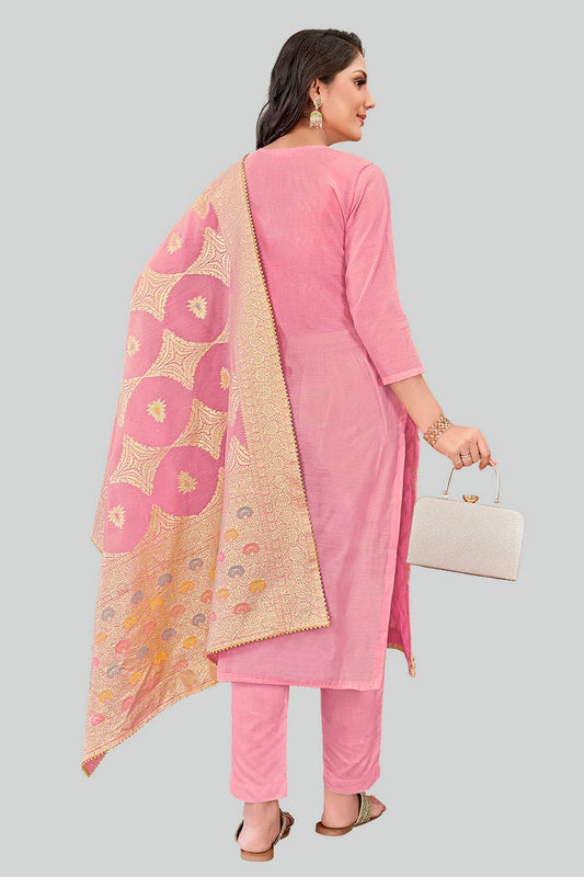 Baby Pink Colour Chanderi Silk Pant Style Suit VSSM1110611