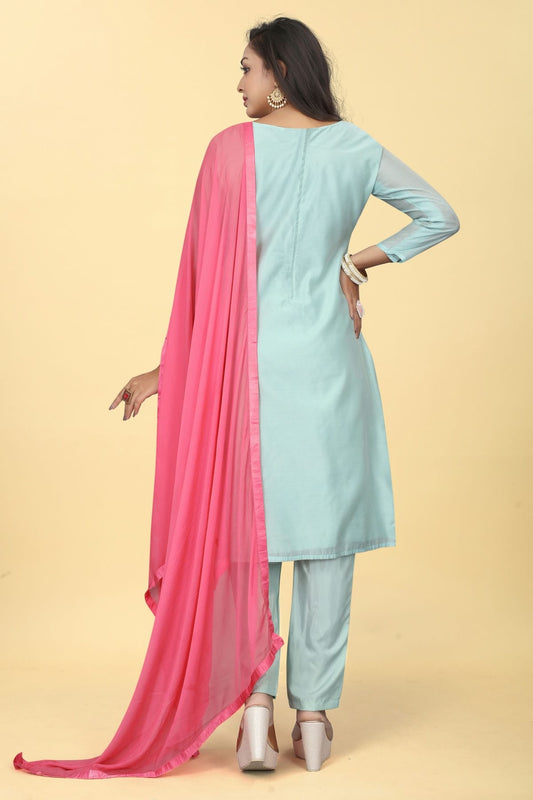 Sky Blue Colour Chanderi Silk Pant Style Suit VSSM1110612