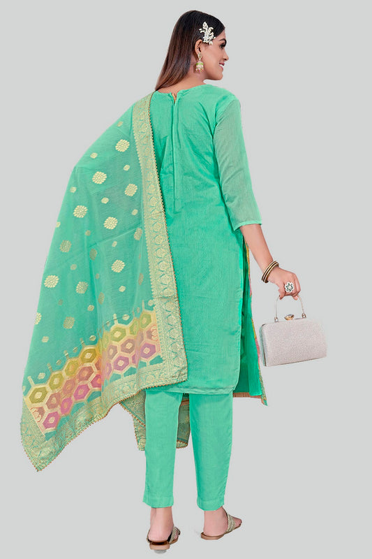 Sea Green Colour Chanderi Silk Pant Style Suit VSSM1110629