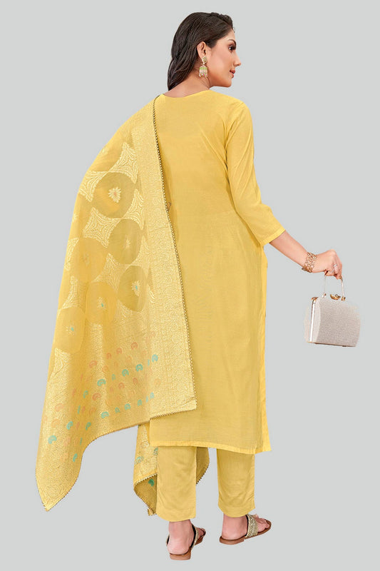 Yellow Colour Chanderi Silk Pant Style Suit VSSM1110637