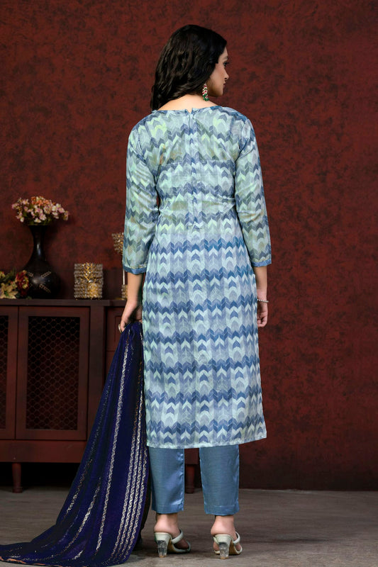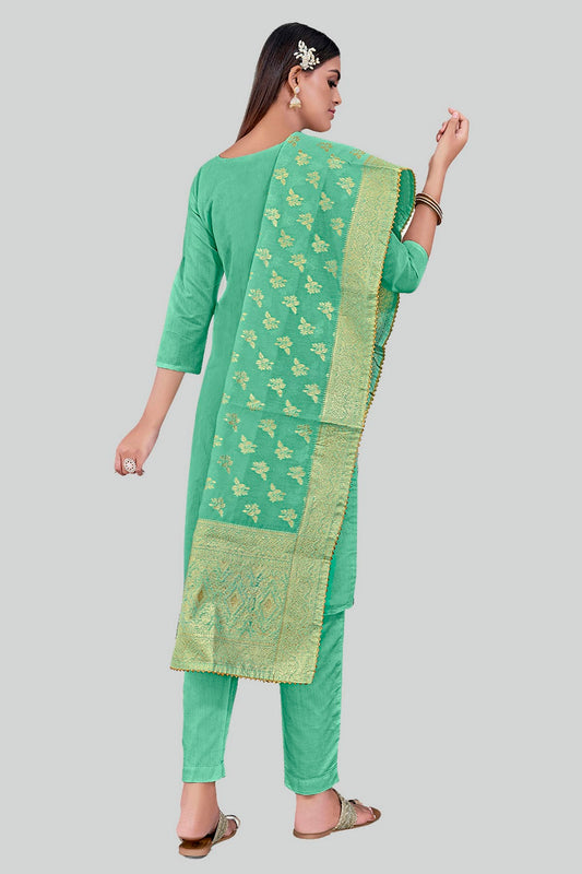 Sea Green Colour Chanderi Silk Pant Style Suit VSSM1110601