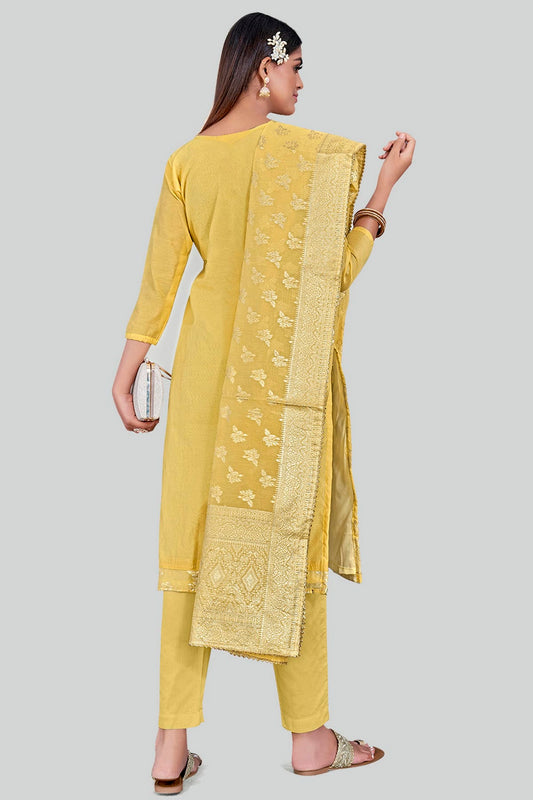 Yellow Colour Chanderi Silk Pant Style Suit VSSM1110600