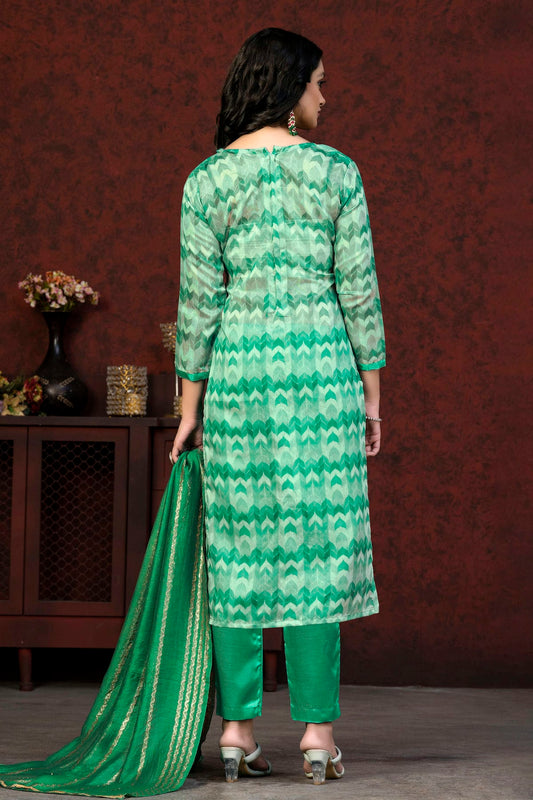 Green Colour Unstitched Organza Pant Style Suit VSUS1160846
