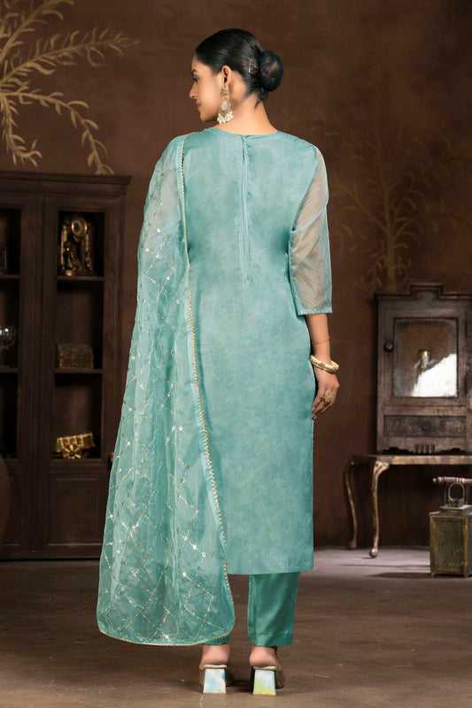 Sea Green Colour Unstitched Organza Pant Style Suit VSUS1161343